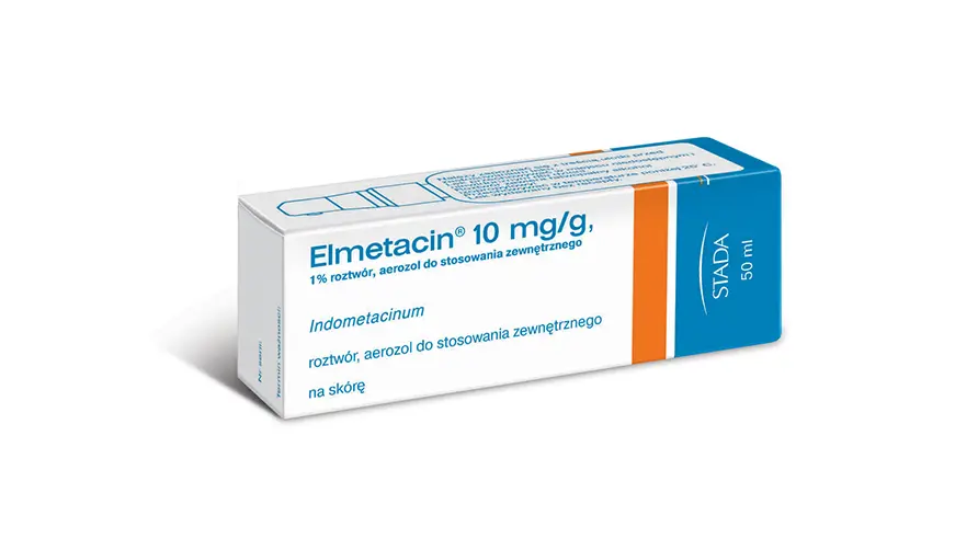 Elmetacin® to lek w postaci aerozolu do stosowania zewnętrznego zawierający 1% roztwór indometacyny o działaniu: