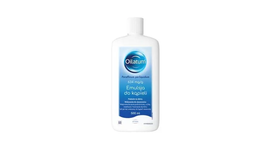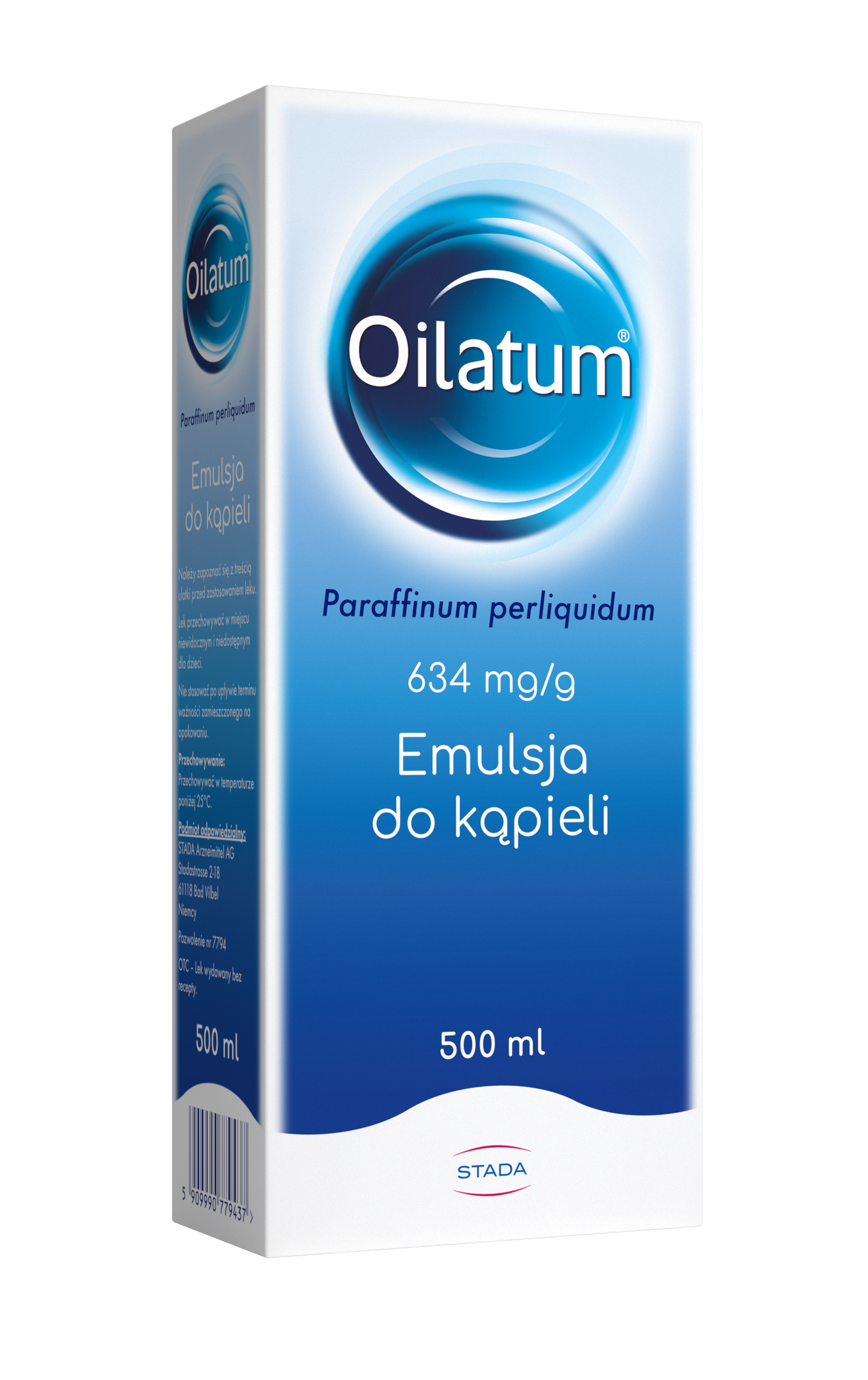 Oilatum® 634 mg/g, emulsja do kąpieli. Wskazania do stosowania: Miejscowe leczenie podrażnionej, suchej, swędzącej i łuszczącej się skóry. Produkt leczniczy Oilatum, emulsja do kąpieli jest też wskazany do kąpieli niemowląt.
