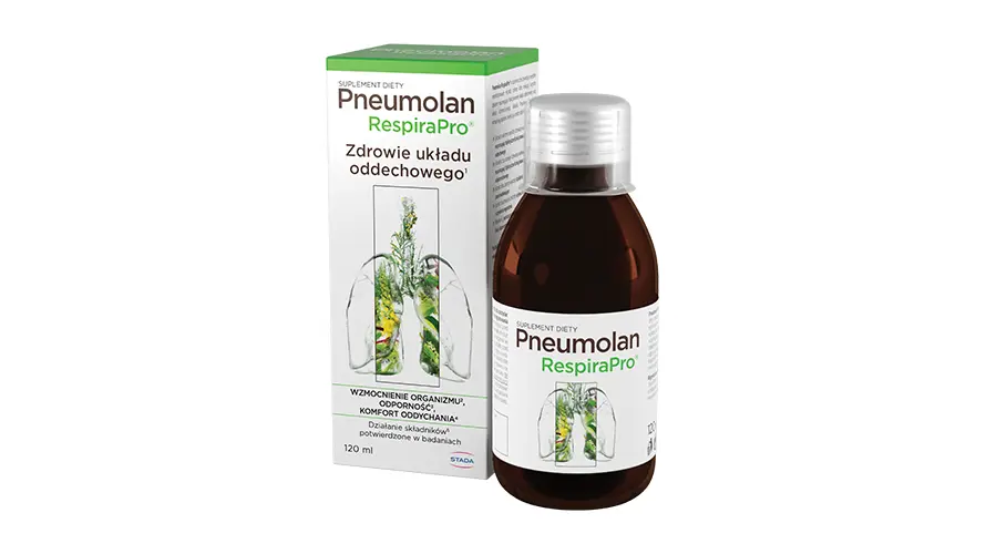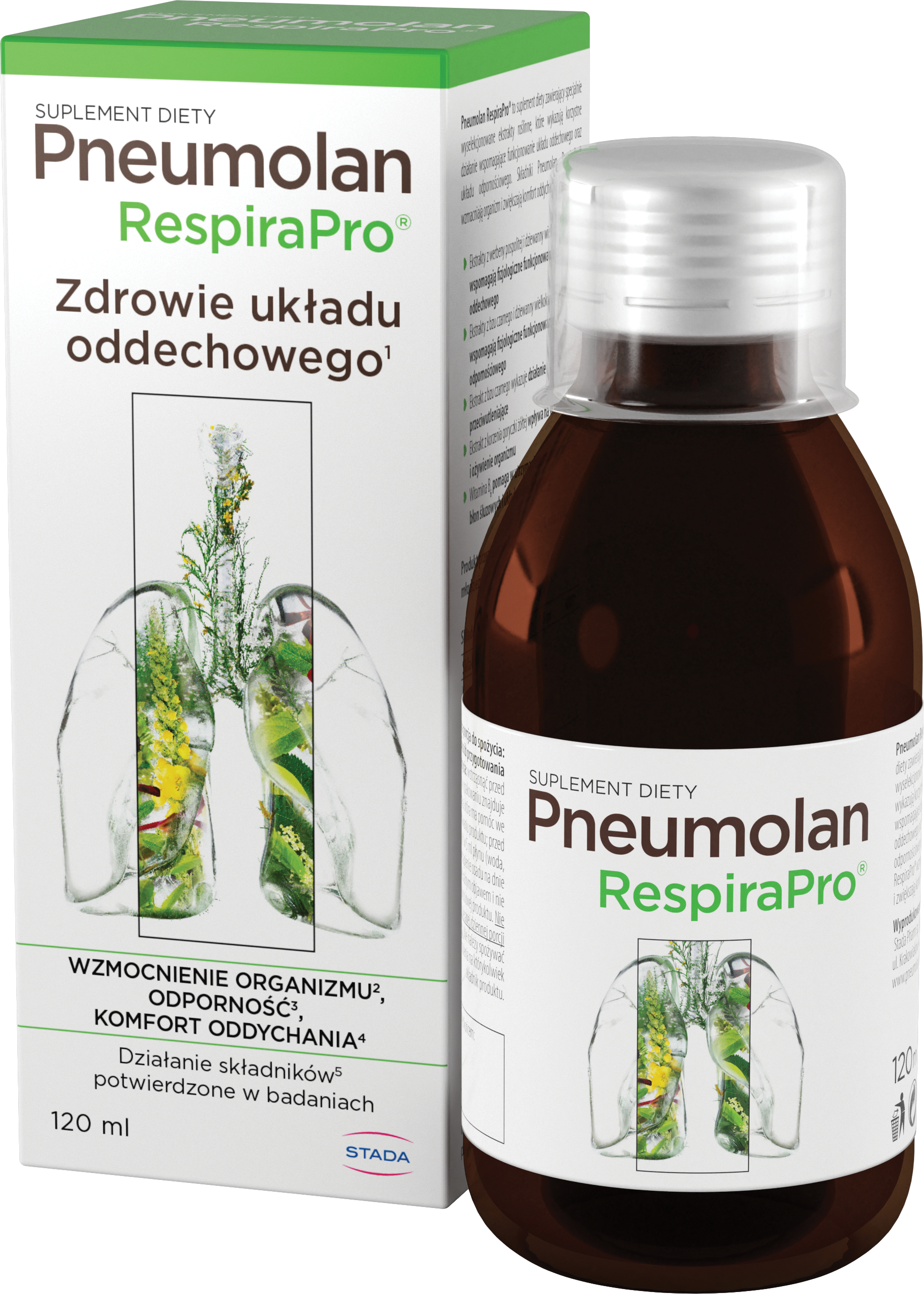 Pneumolan RespiraPro® to suplement diety zawierający specjalnie wyselekcjonowane ekstrakty roślinne, które wykazują korzystne działanie wspomagające funkcjonowanie układu oddechowego oraz układu odpornościowego. Składniki Pneumolan RespiraPro® wzmacniają organizm i zwiększają komfort oddychania.