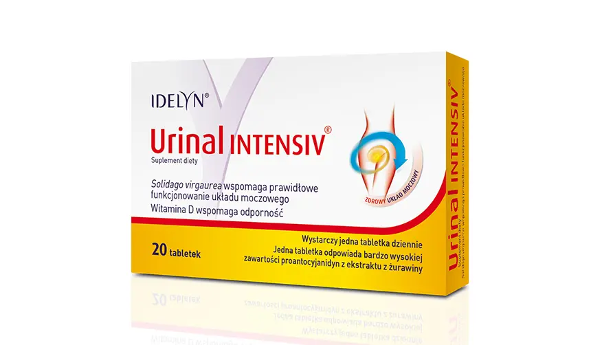 Tabletki Urinal Intensiv® zawierają trzy substancje - ExocyanTM - wysokoskoncentrowany ekstrakt z owoców żurawiny, ekstrakt z nawłoci pospolitej oraz witaminę D. Nawłoć pospolita pomaga w utrzymaniu zdrowego pęcherza i dolnych dróg moczowych oraz wspomaga prawidłowe funkcje wydalania moczu.